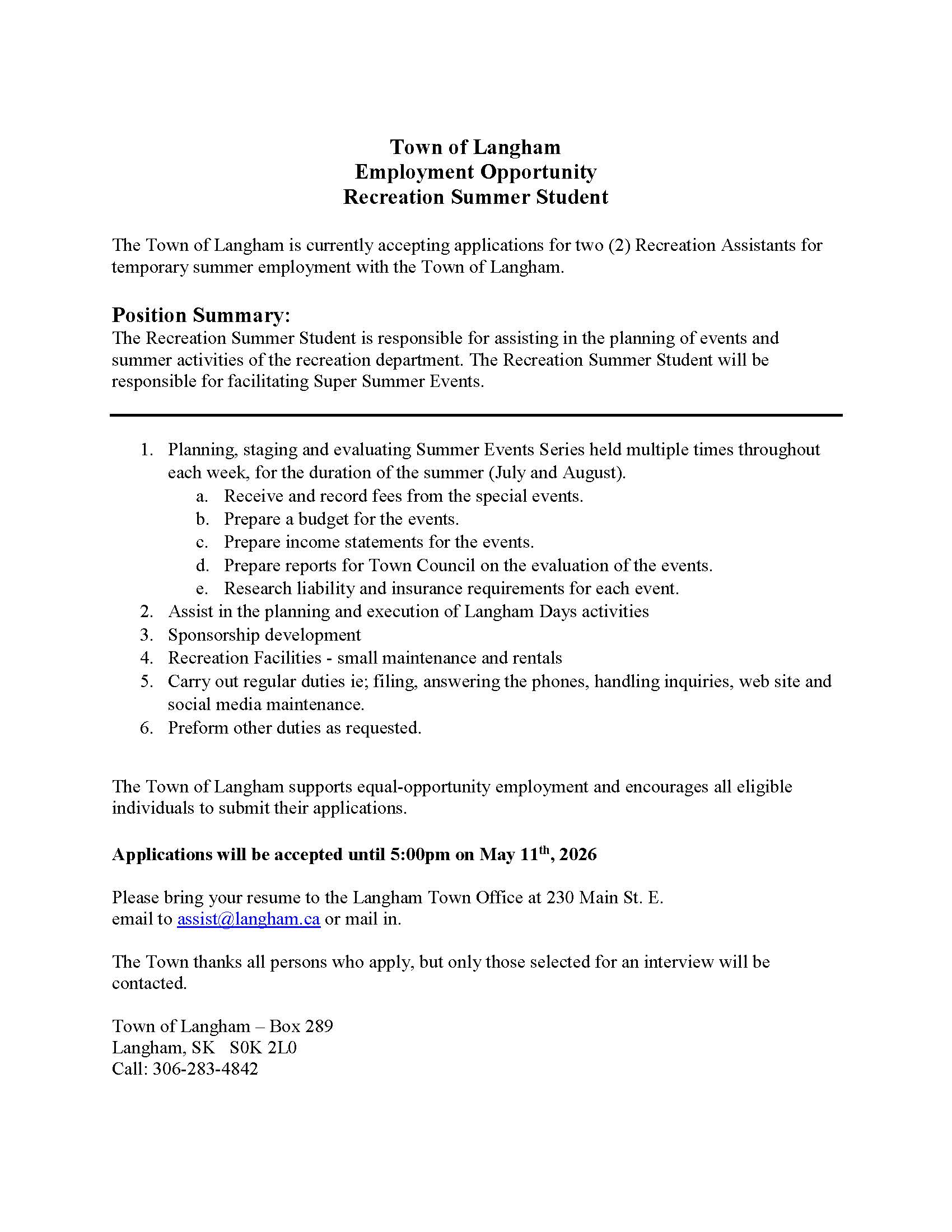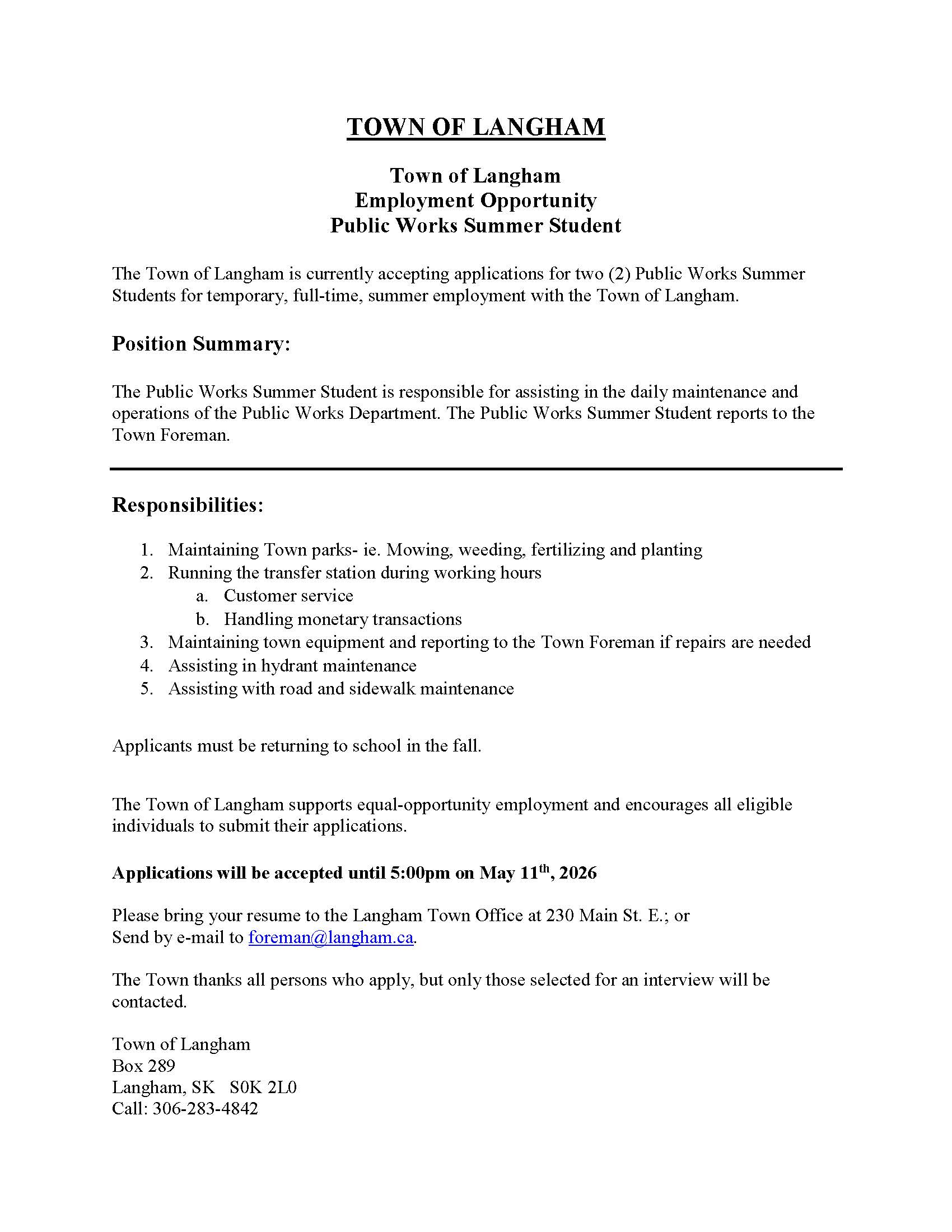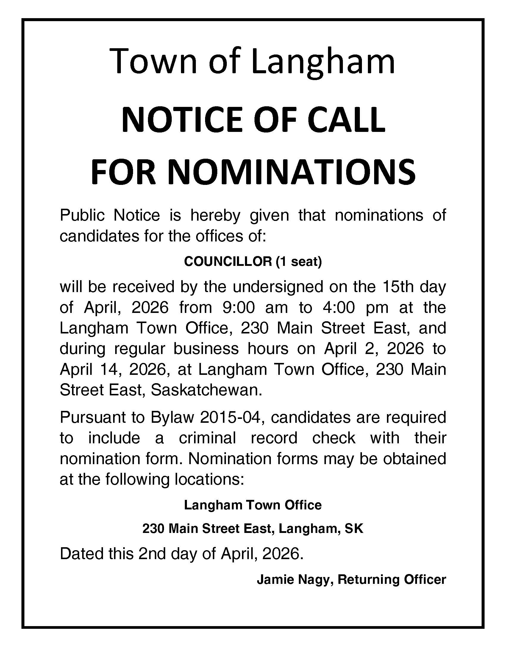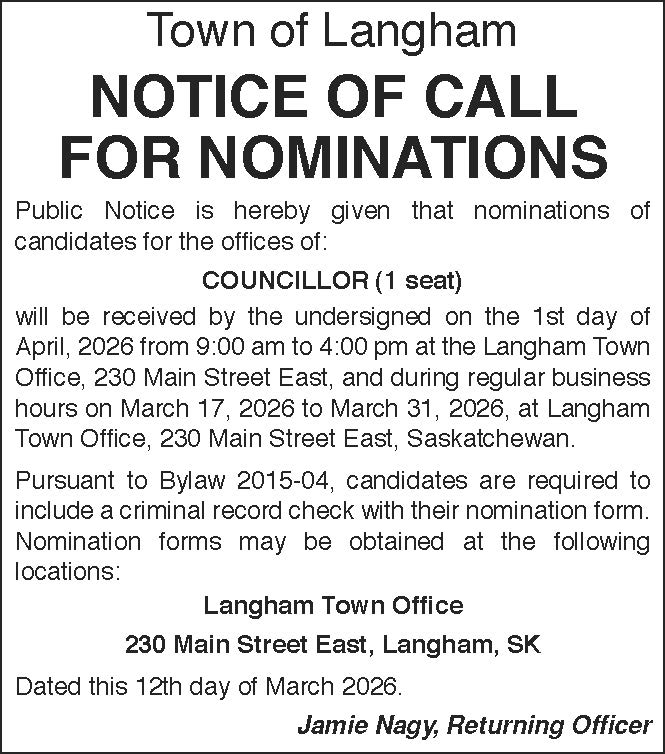 Located in Saskatchewan, Canada just 20 minutes from Saskatoon and John G. Diefenbaker International Airport, the Town of Langham – safe, clean and friendly – strives to maintain its small-town atmosphere. Providing convenience in its location, the community offers an affordable place to raise a family, with quality educational facilities, new opportunities for development, and quality infrastructure. Looking ahead, a positive future for Langham is about promoting and creating a community that people want to live in by continuing to enhance, support and provide opportunities for: