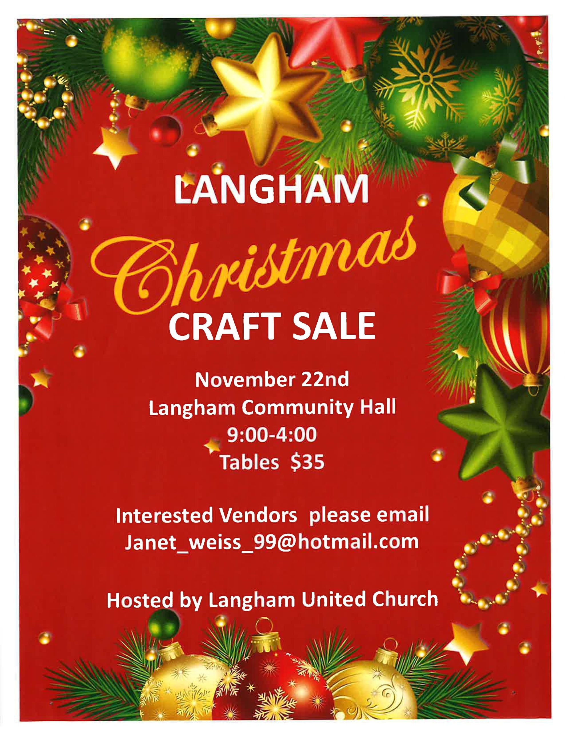 Christmas Craft Sale will be held November 22, 2025 from 9:00-4:00.